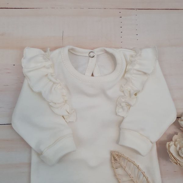 Veľ. 68/74 – dĺžka 36 cm, hrudník – 21 cm x 2, dĺžka rukáva od ramienka 23.