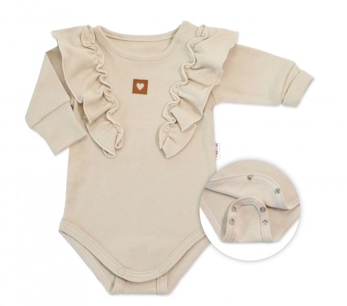 Bavlnené rastúce body NATURE s dlhým rukávom a elegantnými volánikmi pre bábätko – od českej rodinnej značky Baby Nellys.
