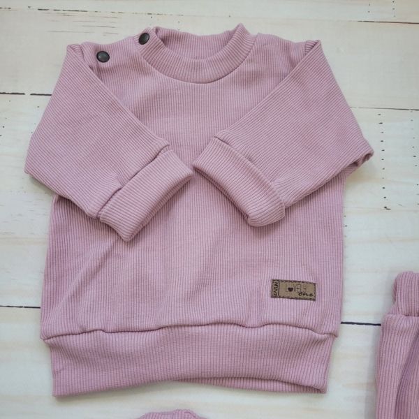 Mikina má zapínanie pri krku na cvočky. Zaručuje pohodlie a pohodlie pri obliekaní. Perfektné pre každé ročné obdobie. Dlhé manžety na rukávoch umožňujú mikine rásť s dieťaťom. Nohavice majú veľmi elastický pás, vďaka ktorému sa nohavice prispôsobia každej postave a predĺžené manžety v spodnej časti navyše umožnia nohaviciam rásť s dieťaťom.