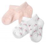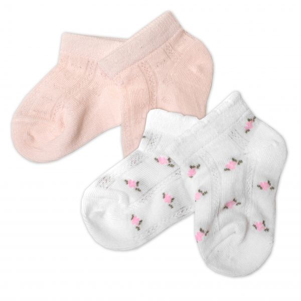 Súprava obsahuje 2 páry ponožiek – 1x ružové, 1x biele s kvietkami.