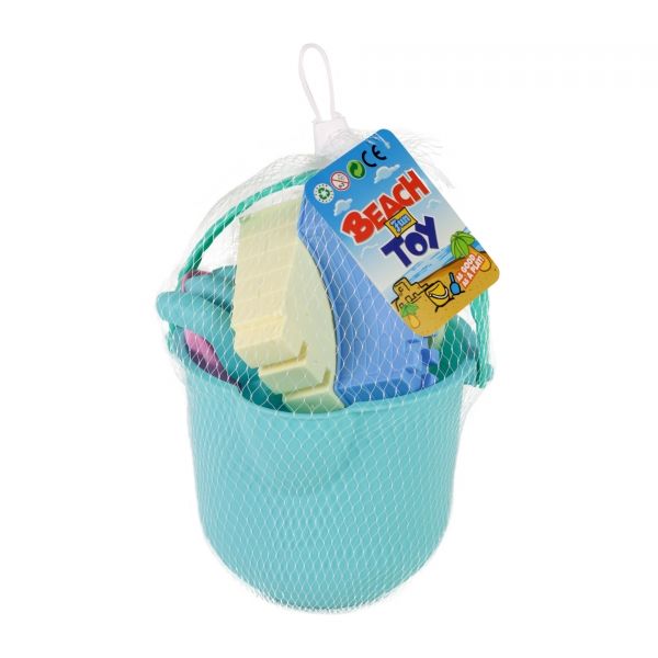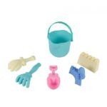 Sada obsahuje vedierko s priemerom 15 cm, 2 lopatky, hrable a 2 formičky. Všetko je vyrobené z odolného plastu.