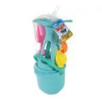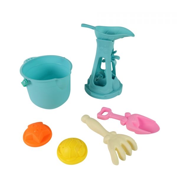 Sada obsahuje vedierko s priemerom 15 cm, 1 lopatku, hrable, 2 formičky a mlynček. Všetko je vyrobené z odolného plastu. Hranie na pieskovisku a stavanie bábovičiek zaistí deťom mnoho hodín zábavy. Tieto hračky dokonale podporujú kreativitu, fantáziu a sústredenie dieťaťa.