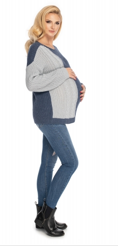 Tehotenský sveter, pletený vzor – jeans /sivá, vel. Uni