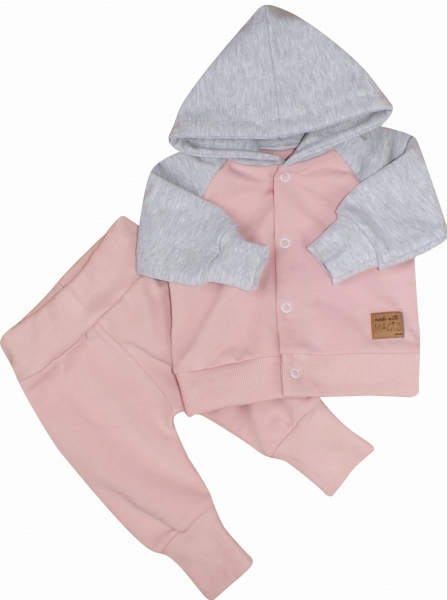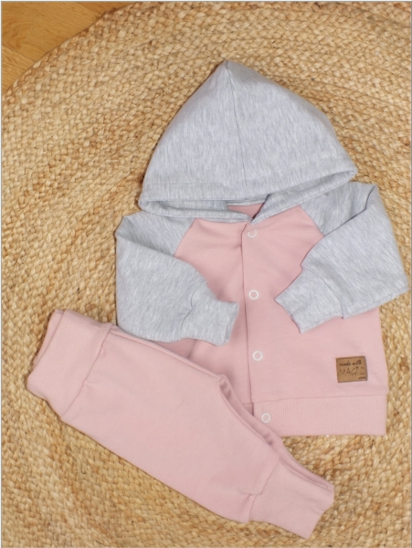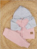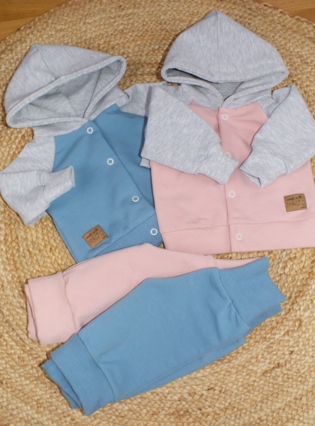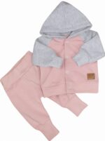 Súprava obsahuje: Mikinu a tepláčiky. Športový strih sa hodí na každý deň. Mikina má zapínanie na cvočky. Nohavice majú široký pás a pohodlné manžety.
