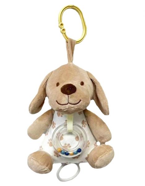 Tulilo Závesná plyšová hračka s hrkálkou Psík, 18 cm – béžová
