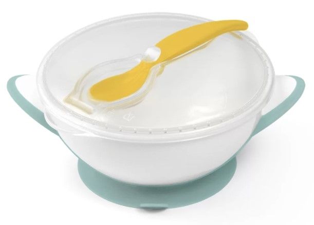 Uzatvárateľná miska s prísavkou a lyžičkou – žltá, mätová