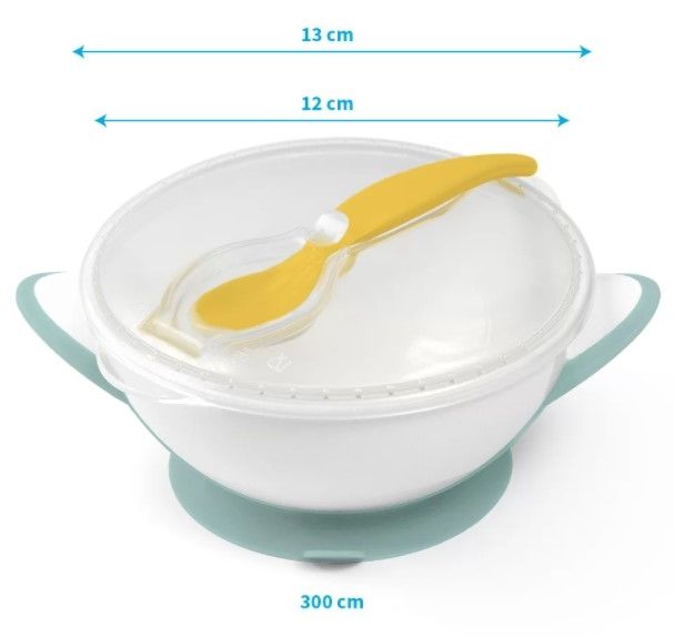 Miska má špeciálne hygienické uschovanie lyžičky vo viečku.