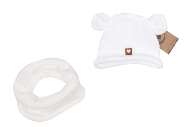 Z & Z Pletená čiapka s uškami + komín, biela, Veľ. 6 – 12 mesiacov