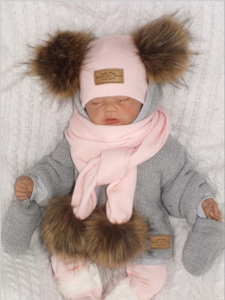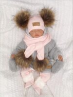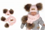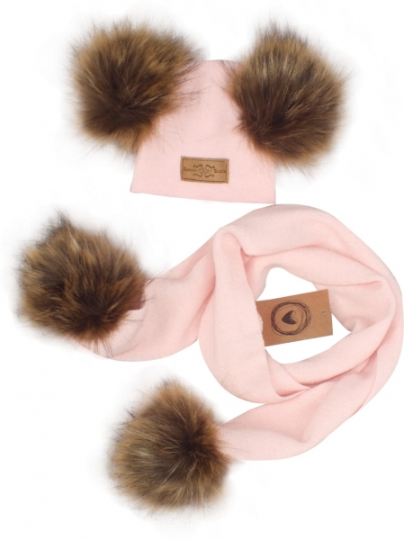 Z & Z Zimná čiapka s brmbolcami z kožušinky a šálom 2v1, ružova, veľ. 68/80