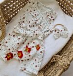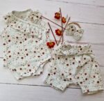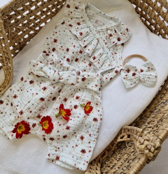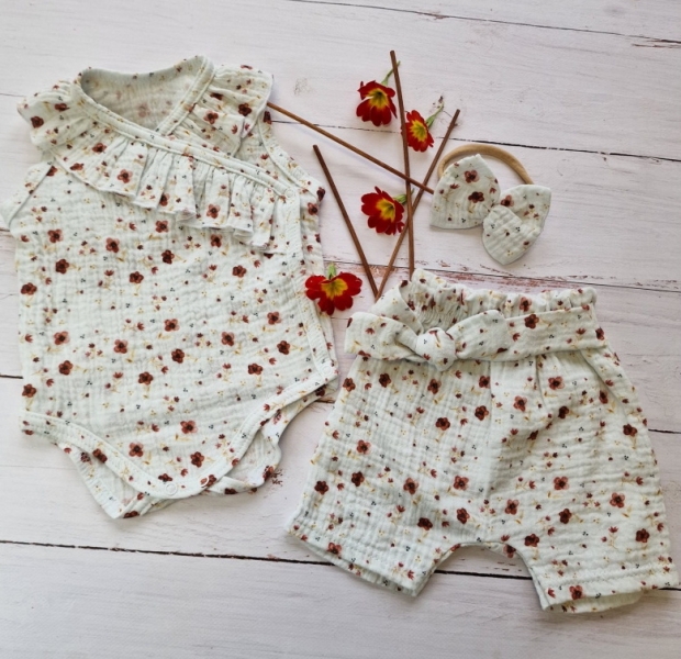 Mušelín je ľahký, savý a priedušný materiál, ktorý je šetrný k jemnej pokožke vášho bábätka. Tento materiál sa nemusí žehliť, čo znamená veľkú pomoc a ušetrenie času pre nás mamičky. Po vypraní je materiál krásne nadukaný a štruktúrovaný.