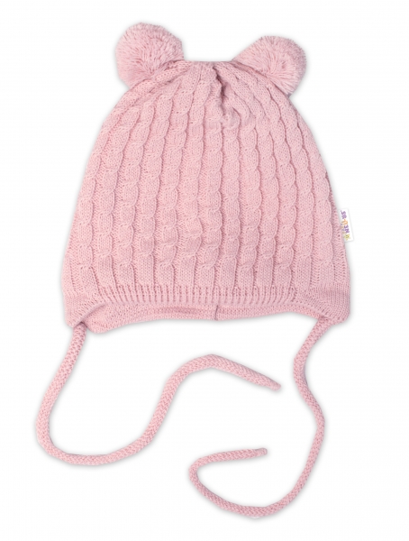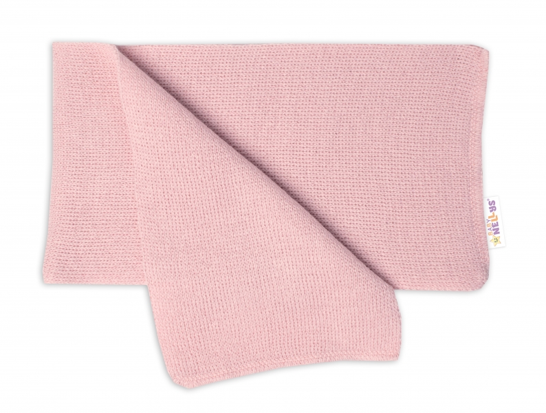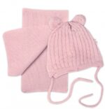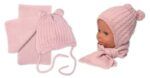 Zimná čiapka na zaväzovanie s brmbolcami + šál, Baby Nellys – púdrovo ružová, vel. 62/68