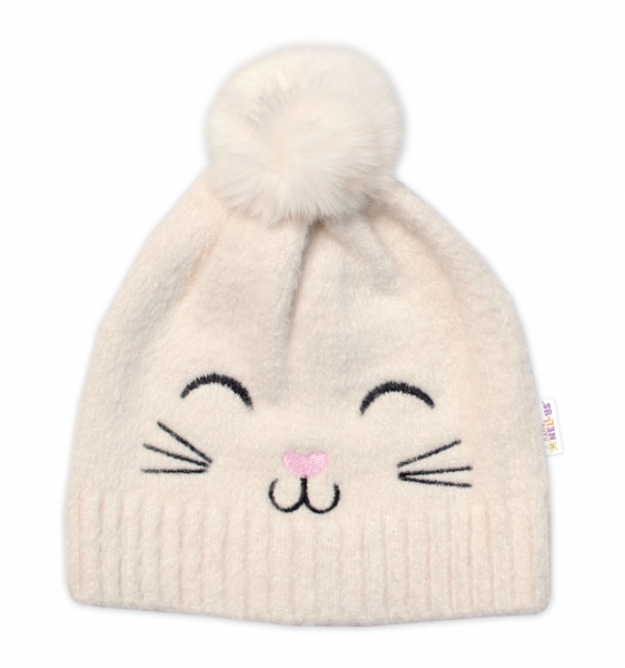 Domov Dojčenské oblečenie Čiapočky, šatky, čelenky, šiltovky, klobúčiky Čiapočky na zimu Zimná čiapka s brmbolcom + šál, Kitty, Baby Nellys – smotanová, veľ. 54/58
