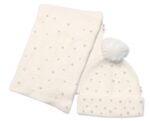 Zimná čiapka s brmbolcom + šál, Pearls, Baby Nellys – smotanová, veľ. 54/58