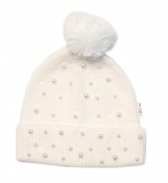 Domov Dojčenské oblečenie Čiapočky, šatky, čelenky, šiltovky, klobúčiky Čiapočky na zimu Zimná čiapka s brmbolcom + šál, Pearls, Baby Nellys – smotanová, veľ. 54/58