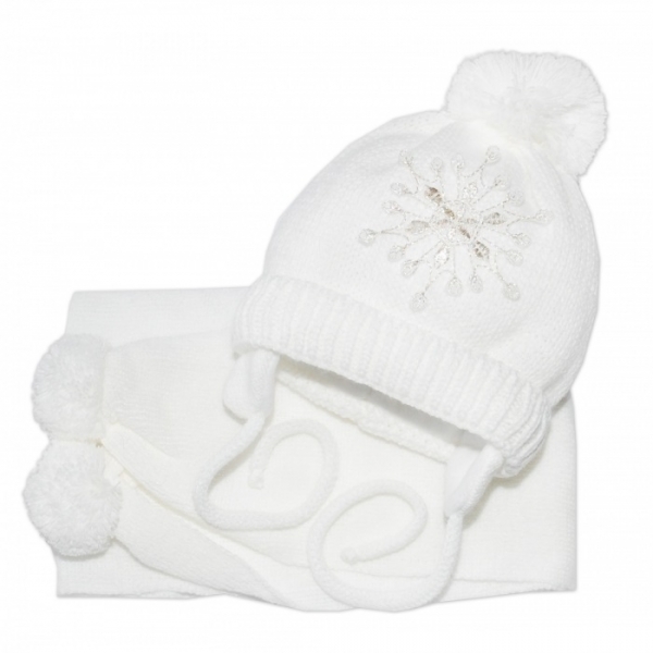 Zimná čiapočka s šálom – Snehová vločka v bielej, 0-6m, Baby Nellys