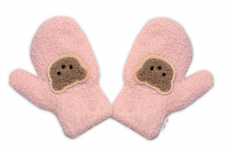 Zimné rukavičky, froté Macko, Baby Nellys, púdrové, 98/104