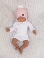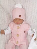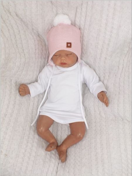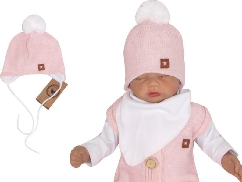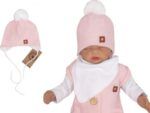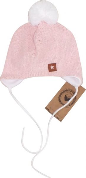 Z&Z Dvojvrstvová pletená čiapka na zaväzovanie s brmbolcom, ružová, veľ. 68