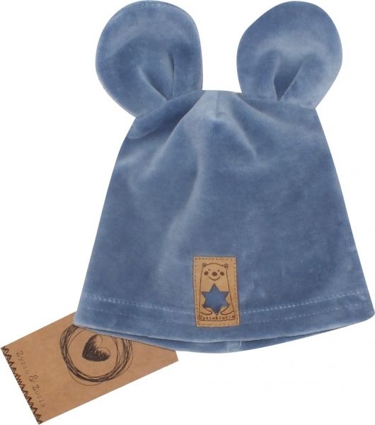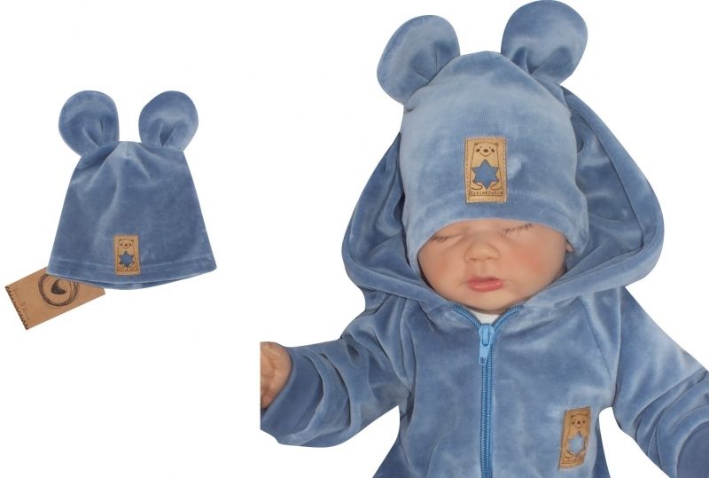 Z&Z Velúrová, semišková čiapočka s uškami, modrá, 80/86