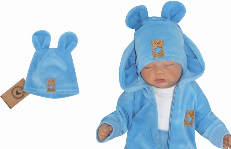 Z&Z Velúrová, semišková čiapočka s uškami, sv. modrá