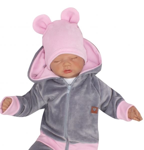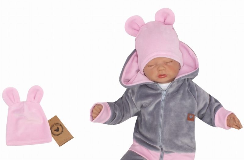 Domov Dojčenské oblečenie Čiapočky, šatky, čelenky, šiltovky, klobúčiky Novorodenecke čiapočky Z&Z Velúrová, semišková čiapočka s uškami Teddy, sv. ruzova