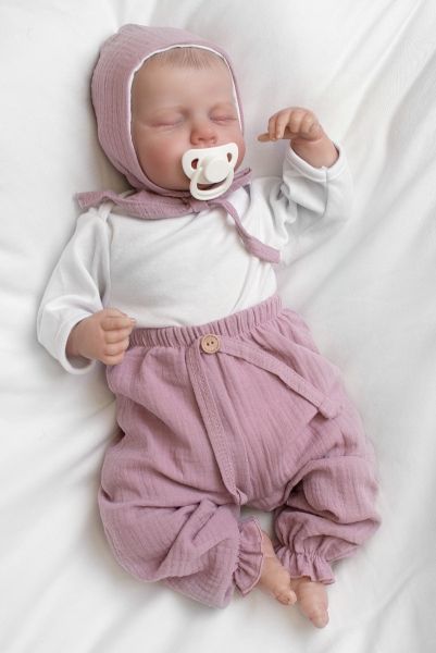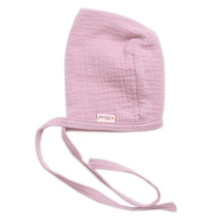 Mušelínová čiapočka na zaväzovanie bonetka Girl, Hand Made, púdrová, ružová