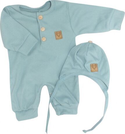Z&Z 2-dielna súpravička rebrovaný overálok s gombíkmi a čiapočkou, morská modrá, veľ. 62