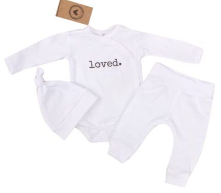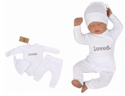 Z & Z 3-dielna súpravička body, tepláčky a čiapočka Loved – biela