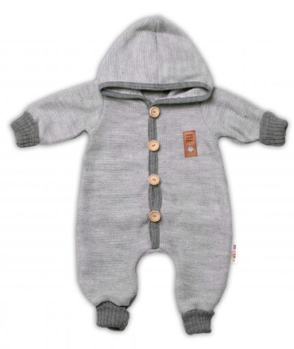 Pletený overálok s kapucňou Hand Made STAR, Baby Nellys, sivý