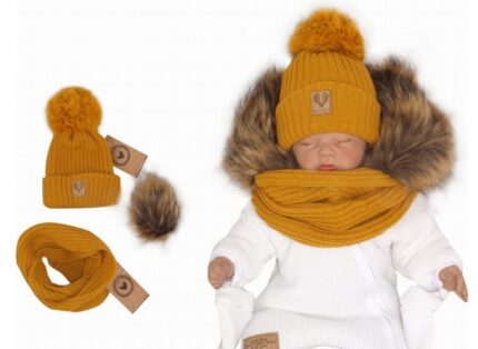 Z&Z Zimná čiapka 3v1 + komín, medová horčica, veľ. 68/80