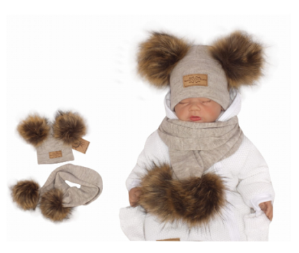 Z & Z Zimná čiapka s brmbolcami z kožušinky s šálou 2V1, béžová, vel. 68/80