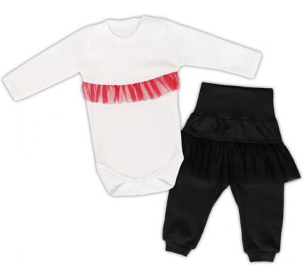 Mamatti 2 dielna sada Body dl. rukáv s tutu volánkem, tepláčky s tutu,biele,čierne, vel.62