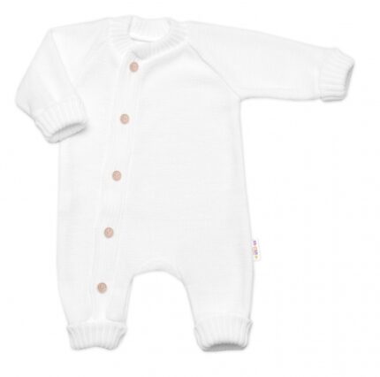 Pletený overálok s gombíkmi zapínanie bokom, Hand Made, biely, biely
