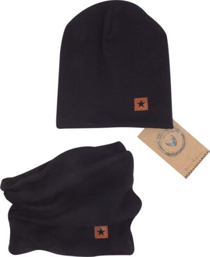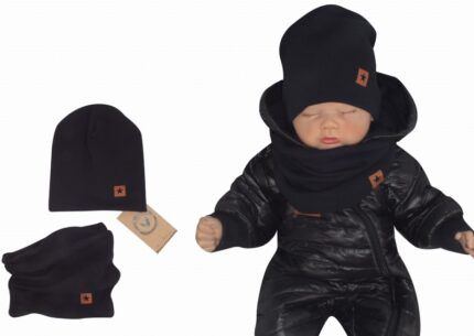 Z&Z Dvojvrstvová rebrovaná čiapočka + nákrčník, čierná, veľ. 80/86