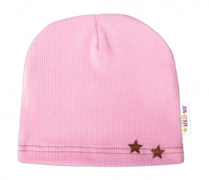 Baby Nellys Rebrovaná čiapka Hviezdičky – ružová