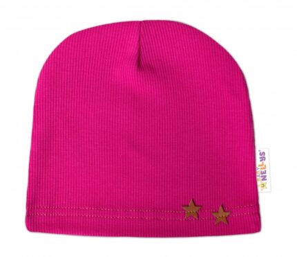 Baby Nellys Rebrovaná čiapka Hviezdičky – malinová