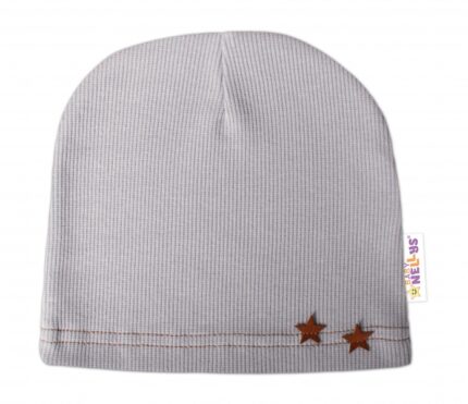Baby Nellys Rebrovaná čiapka Hviezdičky – šedá