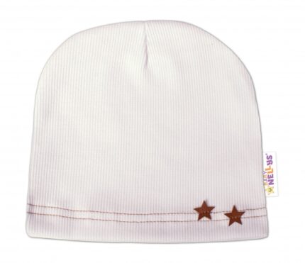 Baby Nellys Rebrovaná čiapka Hviezdičky – biela