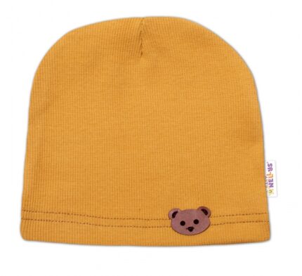 Baby Nellys Rebrovaná čiapka Macko – horčicová