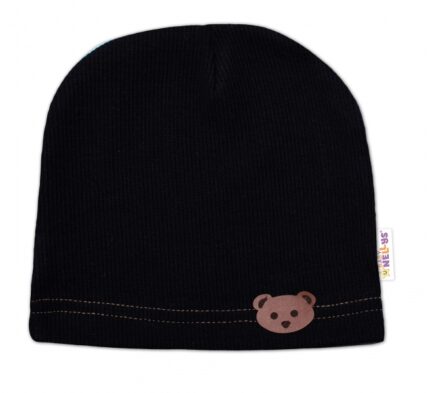 Baby Nellys Rebrovaná čiapka Macko – čierna, veľ. 80/86