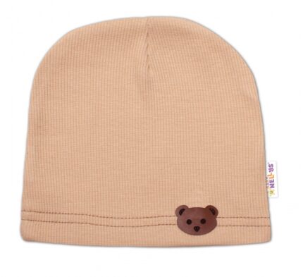 Baby Nellys Rebrovaná čiapka Macko – béžová