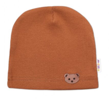 Baby Nellys Rebrovaná čiapka Macko – hnedá, veľ. 92/98