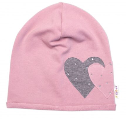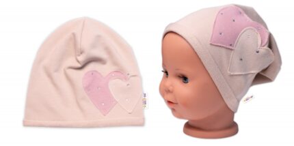 Detská čiapka bavlna, Srdiečka s kamienkami, Baby Nellys, púdrová