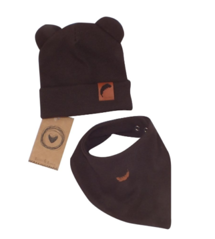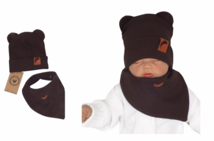Z & Z Dvojvrstvová rebrovaná čiapočka s uškami + šatka, čokoládová, 92/98