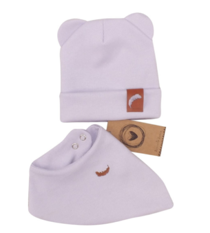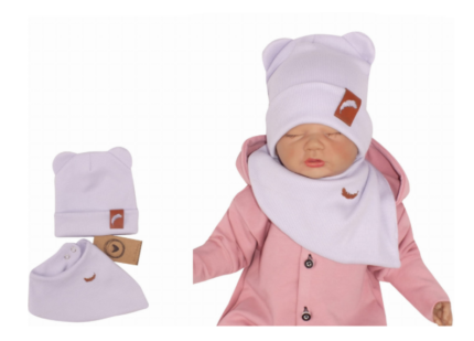 Z & Z Dvojvrstvová rebrovaná čiapočka s uškami + šatka, lila, 68/74